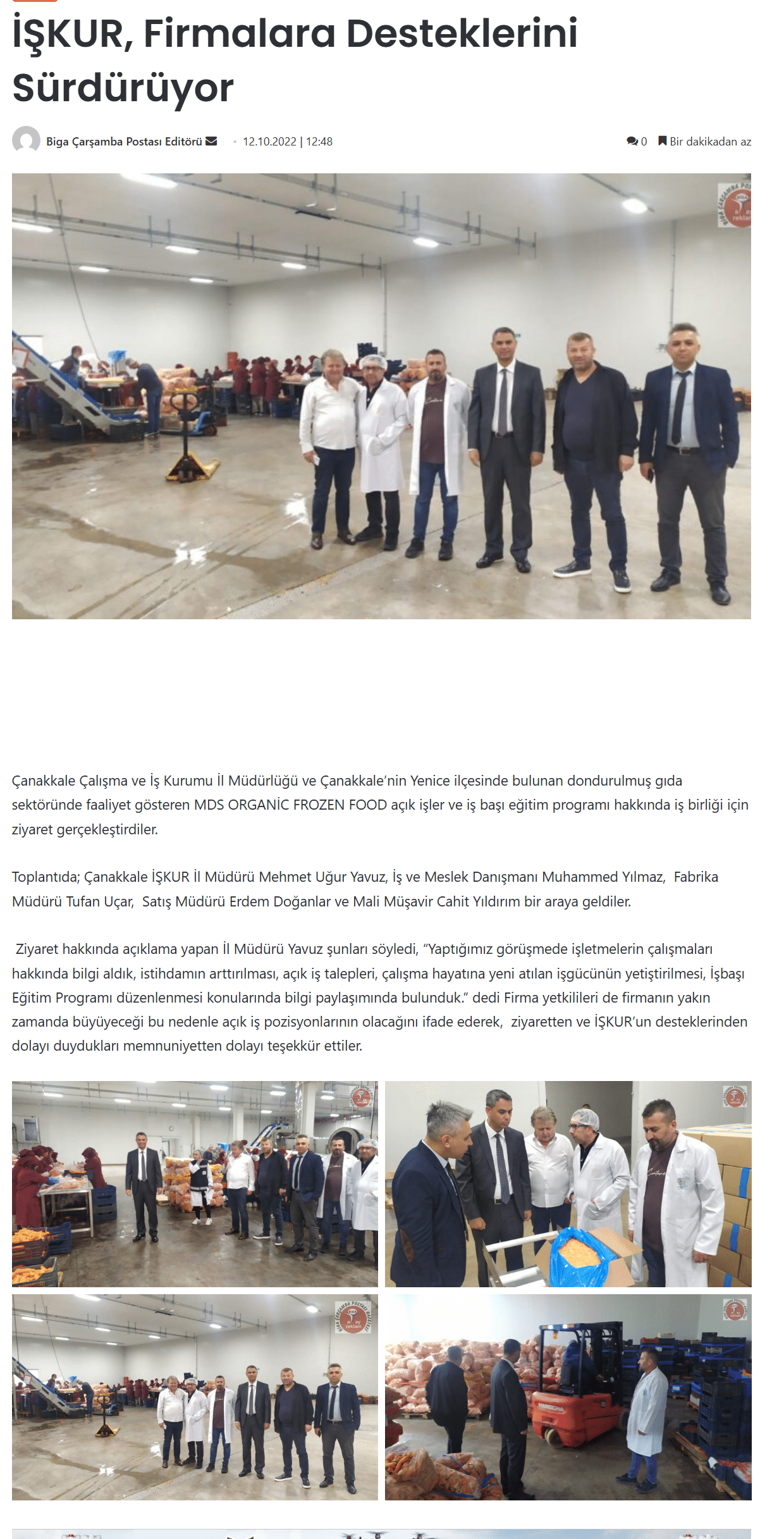 MDS Organic Frozen Food, İŞKUR’un sağladığı iş başı eğitim programları ve iş gücü desteği ile büyüme yolunda önemli adımlar atıyor. Yenice’deki tesislerinde yapılan ziyaretle firmalar, gelecekteki iş gücü ihtiyaçlarını karşılamak için İŞKUR’dan aldıkları destekle ilgili memnuniyetlerini dile getirdi.
